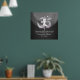 Yoga Studio Meditation Instructor / Life Coach / Healer / Reiki Master / Massage Therapy Quotes Poster - Moderne Black & Silver Yoga Meditation Pose / Bäume Pose (Vrksansana) und OM Symbol auf schwarzen Leder Textur Hintergrund. "Wenn du Frieden in dir selbst findest, wirst du zu der Art von Person, die in Frieden mit anderen leben kann." - Friedensstiftung.