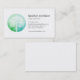 Diese einseitige Visitenkarte zeigt eine Aquarellbilder eines grünen Silhouetts auf einem Kreis in Blau- und Grüntönen. Kunst und Design © 1201AM Design Studio
