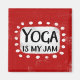 "Yoga Is My Jam" ist ein lustiges Textdesign mit einer weißen Akzent-Form, umgeben von weißen, weißlichen, weißlichen, weißlichen, weißgetönten Punkten.