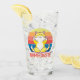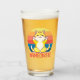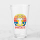 Farbenfrohe Illustration mit "Namowste" Textdesign und niedlicher Kawaii-Katze macht Yoga auf farbig gestreiftem Retro-Hintergrund
