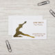 Eine Visitenkarte passend für einen Yoga-Lehrer oder einen Yoga-Lehrer. Diese stilvolle und berufliche Geschäftskarte hat ein Bild einer Frau, die eine serene Yoga-Pose gegen einen Goldhintergrund tut. Die Hintergrundfarbe ist vollständig kundengerecht. Diese Karte kann besonders angefertigt werden, um Ihre eigene persönliche Information, Qualifikationen und Studioadresse einzuschließen.