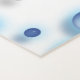 Blasen in verschiedenen Größen, von unten nach oben von matt. Blaue Blasen dominieren, aber es gibt auch kleine weiße/klare Blasen. Alle Blasen haben einen dreidimensionalen Blick. Die Rückseite der Matte ist massiv blau.