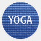 Das Wort Yoga über einem Foto einer blauen klebrigen Yogamatte