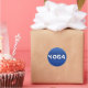 Das Wort Yoga über einem Foto einer blauen klebrigen Yogamatte