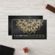 Yoga Meditation Instructor 5 Class Pass Loyalty Card Template - Eleganter Gold Foil Mandala Floral und Om Symbol auf dunkelschwarzen Textur Hintergrund.