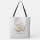 Eleganter Yoga-Mediationslehrer Custom All-Over-Print Tote Bag Vorlagen - Moderne, einfache Minimalistische Imitate Gold Foil Blind Embossed / Debossed OM Symbol auf Weißbuch. Ideal für Yoga Instructor / Fitness Personal Trainer und mehr...