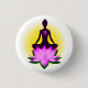 Die Silhouette einer Frau sitzt bei Sonnenuntergang in meditativer Haltung auf einem rosa Lotus. Ideal für Yogi- oder Yogalehrer.