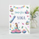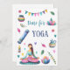 Entdecken Sie eine wunderschön gestaltete Karte, die die Ruhe und Harmonie des Yoga einfängt! Im Mittelpunkt des Designs sitzt eine meditierende Frau in einer entspannten Pose, umgeben von liebevollen Details wie einer Yogamatte, sanft blühenden Blumen, schwebenden Herzen, einer beruhigenden Kerze, zarten Blättern und einer dekorativen Girlande.