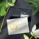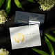 Yoga Studio Meditation Instructor / Life Coach / Healer / Reiki Master / Massage Therapy 10 Class Pass Loyalty Card Template - Elegante Calligraphy Imitate Gold Foil Yoga Meditation Leichte Pose / Sukhasana Pose mit ZEN Symbol auf OM Symbol White Paper Background.