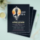 Modernes Yoga Fitness Studio / Meditation Instructor / Personal Trainer / Life Coach / Heiler / Reiki Master / Massage Therapy Open House Flyer Template - Moderne Yoga Meditation Pose / Bäume Pose (Vrksansana) mit Vollmond auf dunkelblauem Hintergrund.