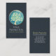 Yoga Meditation Instructor Business Card Template - Elegante Aquamarine Aquarellfarben und Imitate Gold Foil Tree auf Navy Blue Paper Background.