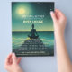 Yoga Fitness Studio / Meditation Instructor / Personal Trainer / Life Coach / Heiler / Reiki Master / Massage Therapy Open House Flyer Template - Silhouette einer Frau in Yoga Meditation Pose auf Felsen auf Calm Ocean Beach bei Nacht mit dem Vollmond und Sterne.