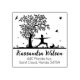 Diese "Rücksendeadresse" Gummi-Briefmarke hat einen Baum mit einem Yoga-Menschen, einer Katze, Namen und Adresse.