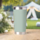 Stay grounded and hydrated wherever you go with this Retro Yoga Lover Tumbler. Featuring a calming yoga pose surrounded by colorful 70s-inspired swirls in sage green, orange, and gold, this design radiates mindfulness and positive energy. Sage green background.