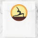 © Sunny Mars Designs - Yoga Sunrise Warrior Pose Silhouette Individualisierbare Round Adhesive Stickers - Coole, einzigartige, lebendige rote und gelbe Yoga-Rundklecker mit der Silhouette einer Yoga praktizierenden Frau mit Sonnenaufgang im Hintergrund. Konzept für Gesundheit, Fitness, Frieden und Ruhe. Ideal für Yogis, Yogalehrer, Yogalehrer, Yogalehrer oder Yogastudenten.