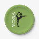 Yoga-Pose-Silhouette zum grünen Hintergrund Pappteller