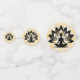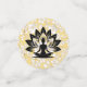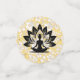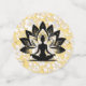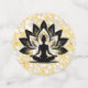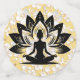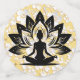 Yogi-Figur auf weißem, spitzenähnlichem Hintergrund und goldener Aufnahme. Die Hintergrundfarbe ist anpassbar.