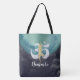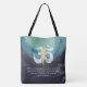 Yoga Mediation Instruktor Custom All-Over-Print Tote Beutel Vorlagen - elegante Aquamarin türkisfarbene Wasserfarbe und Imitate Gold Foil YOGA Meditation Tree Posture mit OM Symbol auf schwarzem Grunge Hintergrund. "Wenn du Frieden in dir selbst findest, wirst du zu der Art von Person, die in Frieden mit anderen leben kann." - Friedensstiftung