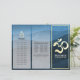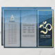 Yoga Fitness Studio / Meditation Instructor / Personal Trainer / Life Coach / Heiler / Reiki Master / Massage Therapy Tri-Falten Broschüren Template - Moderne Imitate Gold Foil Om Symbol auf dunkelblauem Wellenmuster Hintergrund.