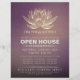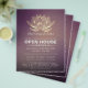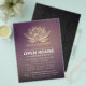 Yoga Studio Meditation Instructor / Life Coach / Healer / Reiki Master / Massage Therapy Open House Flyer Template - Moderne elegante Imitate Gold Lotus auf Lila Grunge Hintergrund.