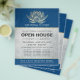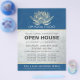Yoga Studio Meditation Instructor / Life Coach / Healer / Reiki Master / Massage Therapy Open House Flyer Template - Moderne elegante Imitate Gold Lotus auf PANTONE 19-4052 TCX Classic Blue Color Grunge Hintergrund.