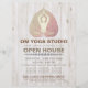 YOGA Meditation Instructor Studio Open House Flyer Template - Elegante Rose Gold Bodhi Leaf und Yogi auf weißem Holz Hintergrund.