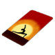 © Sunny Mars Designs - Yoga Sunrise Warrior Pose Silhouette Premium Flexible Magnete - Coole, einzigartige, trendige, rote und gelbe maßgeschneiderte Yoga große oder kleine Flexi Magnete mit der Silhouette einer Frau, die Yoga praktiziert mit dem Sonnenaufgang im Hintergrund. Konzept für Gesundheit, Fitness, Frieden und Ruhe. Ideal für Yogis, Yogalehrer, Yogalehrer, Yogalehrer, Yogafreunde oder Yogastudenten.