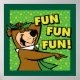Mit diesem lebendigen Yogi Bären-Design machen Sie Spaß! Dieses lebendige Kunstwerk besticht durch den stets fröhlichen Yogi in einer spielerischen Pose mit dem feinen, dynamischen Text "FUN FUN FUN FUN!". Der hellgrüne und gelbe Polka-Dot-Hintergrund verleiht dem Ganzen ein Retro-Ambiente, das sich perfekt für die Liebhaber von klassischen Cartoon und fröhlichen Charakteren eignet. Ob Sie ein langjähriger Yogi-Bärenfan sind oder einfach nur Liebe aufregende, nostalgische Designs, dieses Kunstwerk wird sicher Lächeln und Positivität verbreiten!