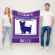 Yorkie hellblau und lila Decke mit personalisiertem Namen.
