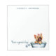 Niedlicher Hund Aquarellbilder eines glücklichen Yorkie-Hundes in einer Badewanne. Ideal für Hundefreunde. Bereit, oben mit Ihrem Namen personalisiert zu sein und unten steht "Haben Sie einen schönen Tag!", was sich ändern lässt, wenn Sie gewollt haben. Ideal für Hundefreunde, Poodle-Besitzer, Hundegroßhändler, Hundesitter und Tierärzte.