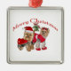 Zwei Yorkshire-Terrier, die im Weihnachtsrot gekleidet werden, werden auf bunter Weihnachtsverzierung mit rotem Band gekennzeichnet.