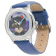 Kinderuhr aus Edelstahl mit blauem Lederarmband