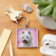 Yorkie Large Premium Square Schlüsselanhänger Vollfarbiger, vollblutdruckender Silberfarben-Metallarm & Ring UV-resistente und wasserdichte Add-Fotos, Artwork und Text Keine Mindestbestellung