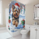 Yorkipoo läuft im Schnee mit Weihnachtshut Duschvorhang