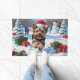 Ein verspieltes Yorkipoo läuft fröhlich durch die schneebedeckte Winterszene und trägt einen festlichen roten Weihnachtshut. Dieses bezaubernde Design unterstreicht den fließenden Mantel der Rasse, den hellen Ausdruck und die liebevolle Persönlichkeit, während es die Wärme und Freude der Ferienzeit einfängt. Ein schöner Wintermoment voller festlichen Beifall.