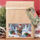 Yorkipoo läuft im Schnee mit Weihnachtshut Rechteckiger Aufkleber