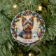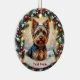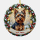 A beautiful, ultra-detailed Christmas ornament design featuring a realistic portrait of the breed centered within a soft, festive winter frame. This elegant design includes pine branches, red berries, and snowflakes against a snowy backdrop, illuminated by warm holiday lighting. The balanced, round composition includes clear space below the dog for customization.