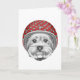 Dieses Design zeigt ein Portrait eines Yorkshire Terrier, der einen aquamarinen und roten Polka gepunkteten Helm trägt.