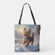 Tragen Sie Ihr Wesentliches mit Stil in diese Yorkshire Terrier Tote Tasche mit einem Yorkie, der durch frischen Schnee begrenzt wird. Leicht und modern, ideal zum Shoppen, Arbeiten oder lässige Ausflüge. Ein vielseitiges Accessoire, das den Charme und das Vertrauen der Rasse widerspiegelt und das zu einem Muss für Yorkie-Liebhaber macht.