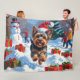 Yorkshire Terrier in Snow mit Weihnachtshut Fleecedecke