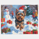 Ein lebendiger Yorkshire Terrier schwebt durch den Schnee und trägt einen hellen roten Weihnachtshut mit fröhlichem Urlaubssinn. Diese festliche Winterlandschaft unterstreicht den spielerischen Charme und die Eleganz der Yorkie, umgeben von der Magie der Saison. Ein herzliches Design, das sowohl die Schönheit des Winters als auch die Persönlichkeit dieser geliebten kleinen Rasse einfängt.