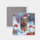 Yorkshire Terrier in Snow mit Weihnachtshut Magnet