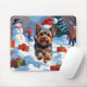 Yorkshire Terrier in Snow mit Weihnachtshut Mousepad