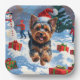 Yorkshire Terrier in Snow mit Weihnachtshut Pappteller