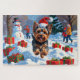 Yorkshire Terrier in Snow mit Weihnachtshut Puzzle