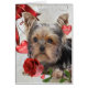 Yorkshire-Terrier-Posen mit Herzen und Rosen für Mamma in dieser einer netten Weihnachtskarte perfekt für den Tag oder den Valentinstag der Mutter.