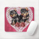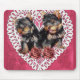 Zwei bezaubernde Yorkshire Terrier Welpen posieren hübsch auf einem spitzengedeckten rosa Herz. Es ist eine welpe Liebe! Wunderbare Geschenkidee für den Hundefreund in deinem Leben. Ideal für den Valentinstag oder jeden Tag des Jahres, denn es ist immer Zeit, etwas Liebe zu zeigen!
