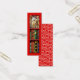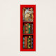 I WUFF to Read! ist auf der Rückseite dieses Buchzeichens, während ein süßer Yorkshire Terrier mit einem roten Bogen seinen Kopf durch ein Bücherregal mit Büchern auf der Vorderseite wirft.