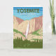 Yosemite Vektorgrafik Design. Der Park ist berühmt für seine riesigen, alten Sequoia-Bäume und für Tunnel View, die ikonische Aussicht auf den Turm Bridalveil Fall und die Granitfelsen von El Capitan und Half Dome.