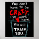 You Don't Have To Be Crazy To Work Here We'll Train You
